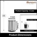 Mumma's LIFE Stainless Steel Plain Pedal Bin with Plastic Bucket - Lid (Pedal Bin 5LTR) Stainless Steel Dustbin (Silver)