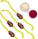 Mundal Designer YT RAKHI DSN5 RED YELLOW 4PC Assorted Chawal Roli Pack, Rakhi Set (Roli, Chawal, Set of 4 Red Yellow Handmade Craft Paper Rakhi)