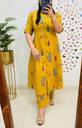 Women Mustard Yellow Printed Rayon Kurta with Palazzo | Long Button-Down Kurti Set | Ethnic & Casual Wear