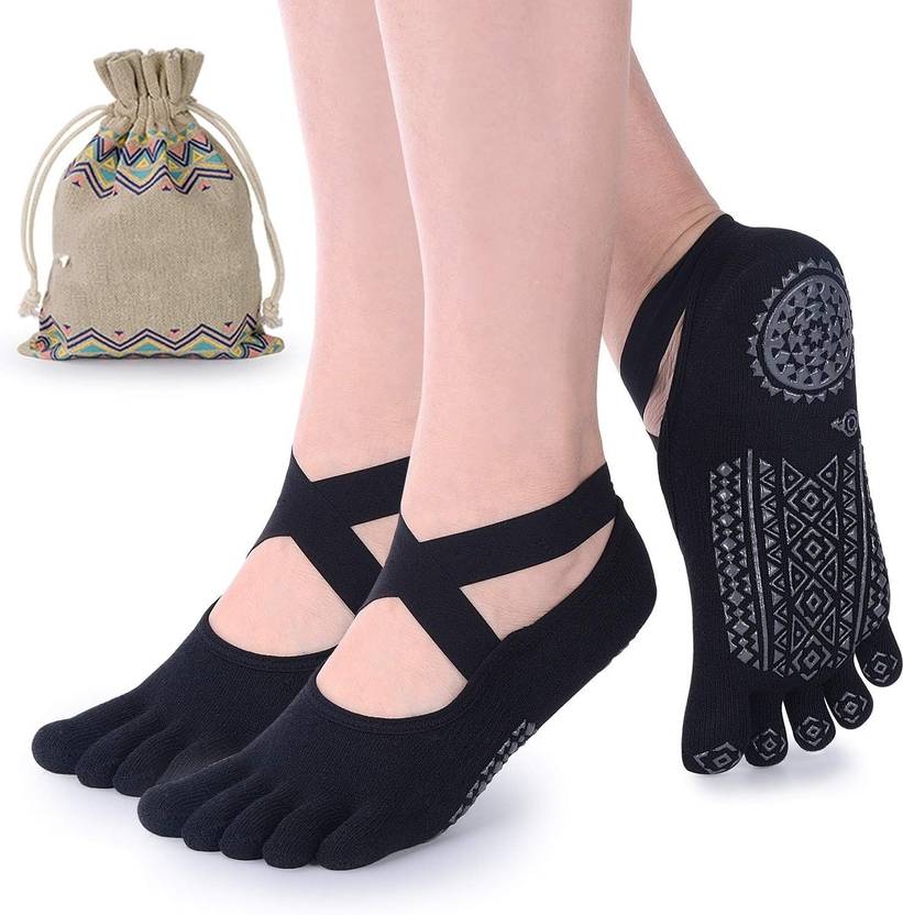 Anti Slip Five Toe Full Lenght Cotton Socks for Gym Workout