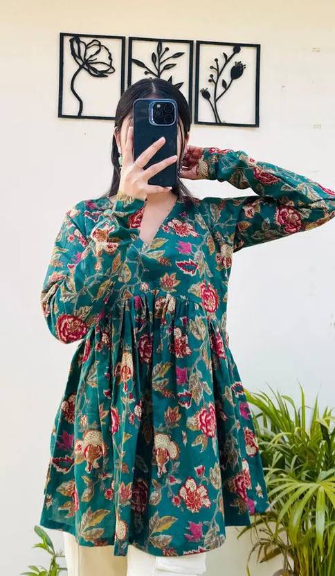 The Muntahaa Women Floral Print Flared Kurta is a graceful and elegant addition to your ethnic wardrobe. Designed with a beautifully flared silhouette, it enhances your look with flow and charm, making it perfect for festive occasions, casual outings, or semi-formal events. The kurta features a vibrant all-over floral print that brings a refreshing touch of tradition and femininity. Made from soft, breathable fabric, it ensures day-long comfort even during long hours of wear. The 3/4th sleeves and classic round neckline provide a timeless style that complements all body types. Whether paired with leggings, palazzos, or even skirts, this kurta adds a stylish flair to your overall ensemble. Crafted with precision and high-quality stitching, it remains a durable favorite in your collection. Ideal for women who love effortless ethnic fashion with a modern twist, the Muntahaa flared kurta brings beauty, comfort, and style together in one versatile piece.