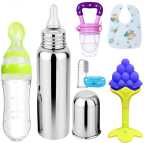 XIIAA Baby bottle,teether,bib,fruitfeeder,and finger toothbrush[packof-5] Teether and Feeder (Green)