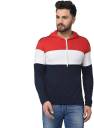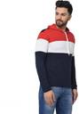 Men Colorblock Hooded Neck Cotton Blend Dark Blue T-Shirt