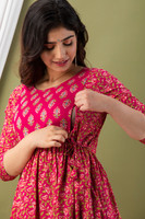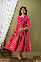 Murli Kurti Flared/A-line Gown (Pink, Green)