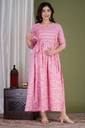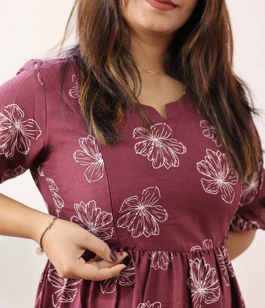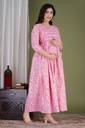 Experience comfort and elegance with this beautifully designed maternity A-line gown, crafted from soft and breathable cotton fabric. The floral print adds a touch of charm, while the front buttons and gathered waist provide ease and flexibility during and after pregnancy. Perfect for casual outings, home wear, or maternity photoshoots, this gown combines style and functionality for every mom-to-be.
