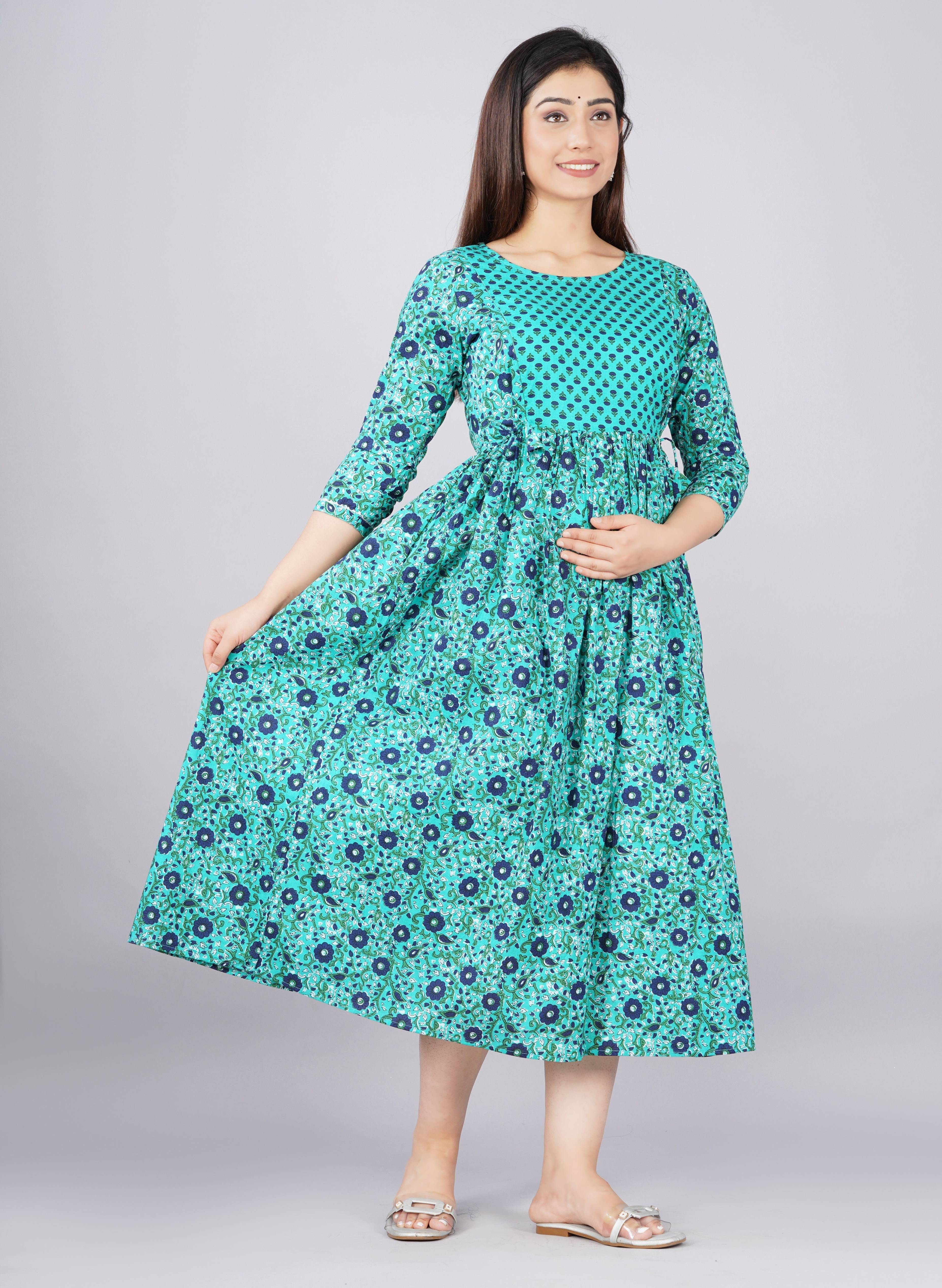 The Feeding Gown has been designed uniquely plits around the tummy area to hide Pre and Post Pregnancy baby bumps beautifully This Gown Style Indian & Western Dress is lightweight, breathable, stretchy & incredibly soft to the skin. This great feature is also, convenient as a maternity nursing dress because you can easily open and close it anywhere at any time to breastfeed your baby it also suits as a sleepwear needs and a great Maternity Wear for Home & Office wear use Feeding Dress With Breathable Fabric: Maternity Dress made of breathable cotton fabric that allows air circulation and keeps you cool all day long. Be A Mom In Style: We understand that Breastfeeding can be uncomfortable at many occasions that's why we offer innovative Feeding wear with easy concealed nursing access so you can style yourself with confidence. Wear this stylish and comfortable Nursing dress .These Floral printed pregnancy dresses are perfect for any occasions such as work, vacation, friends, party or family gathering etc.