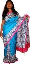 Printed Murshidabad Pure Silk Saree (Light Blue, White, Pink)