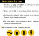 | Usage Instructions | - Mix 1 scoop (32g) of powder with 250ml of cold water or skimmed milk., Shake well in a shaker or blend until fully dissolved., Consume immediately after workout or as advised by your nutritionist., For best results, use once daily along with a balanced diet and regular exercise., Not for medicinal use. Not to exceed the recommended daily intake.