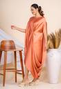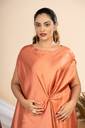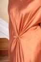 Mush Clothing Women Stylist dusty red side knot cowl assymetric dress in satin with side knot detailing at front of waist. It has assymetrical hemline, boat neck, drop shoulers, flared assymetric side cowl design. It is the perfect pick for spirited festive look. Mush Clothing makes event dressing easy with an intuitive draping style in light as air fabrication. Easily dress up or dress down our Clothing with a switch in accessories.