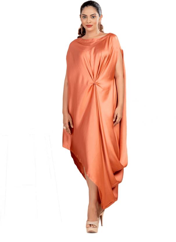 Mush Clothing Women Asymmetric Orange Maxi/Full Length Dress