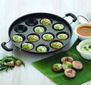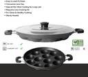 MUSVUZA Non Stick 12 Cavity Aluminium Appam Patra Ponganal Pan Guntapongadalu Pan Paniarakkal with Lid 1 L capacity 22 cm diameter (Aluminium, Non-stick)