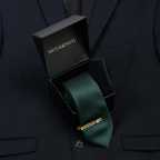 MUTAQINOTI Checkered Green Italian Style Silk Necktie Set With Pocket Square & Gold Tie Pin Polka Print Tie