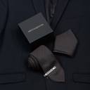 MUTAQINOTI Flowral Black Italian Style Silk Necktie Set With Pocket Square & Chorme Tie Pin Printed Tie