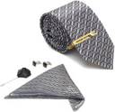 1 Tie, 1 Matching Pocket Square, 1 Pair Cufflinks, 1 Golden Tiepin, 1 Brooch