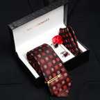 1 Tie, 1 Matching Pocket Square, 1 Pair Cufflinks, 1 Golden Tiepin, 1 Brooch