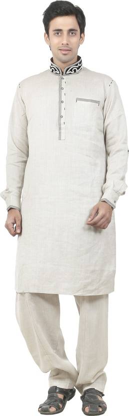 From The House Of Fuzion Couture, Comfort Fit Pathani Salwar For Mens Has A Classy Look With An Aristocratic Touch. This Classy Outfit For Mens Is Perfect For All Wedding & Festive Occassions. The Product Price Is Inclusive Of A Top & Bottom Only. This Model Has A Height Of 5 Feet 11", Waist Of 30 Inches And Is Wearing A Kurta Of Size L (38").