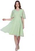 Muzun;The Fashion Women's Tiered Maxi/Knee Length Casual Dress offers a stylish and comfortable option for everyday wear. Its lightweight georgette fabric and tiered design provide a flattering silhouette, making it suitable for various occasions