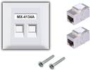 MX 2 Port Face Plate with Shutter / STP CAT-6A Inline Coupler (Shielded) (4134A) Dock (White)