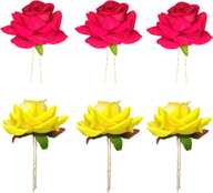 MX WOMEN HAIR STYLE Artificial Roses U-Shape Pins with Colored Roses Hair Styling Accessory Hair Pin Hair Pin (Red, Yellow)