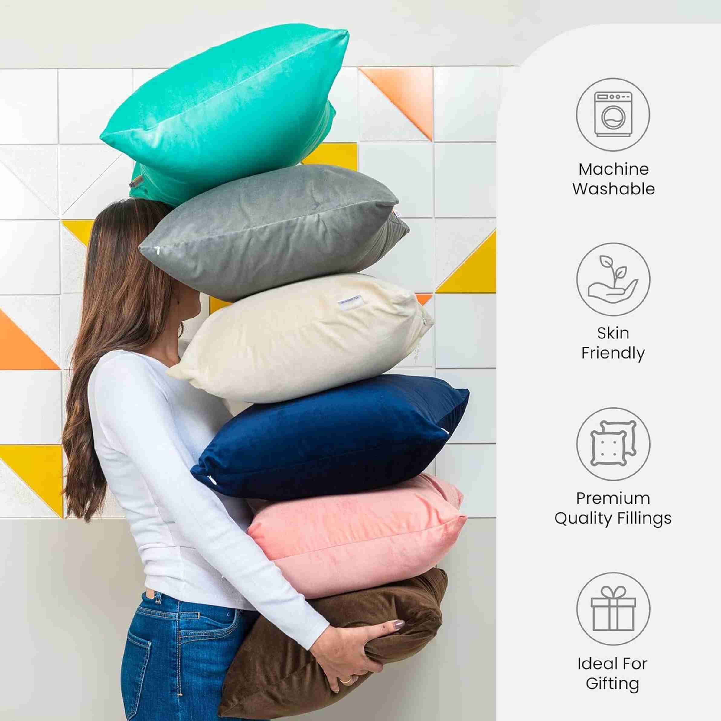 These are nice Grey color cushions. Liked the microfibre material .filling is really soft and bouncy...loved it.