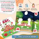 Introduces children to new words associated with each letter., Enhances language skills through discussions about letters and words., Promotes understanding of alphabetical order and letter sequences., Inspires imaginative play and storytelling through sticker scene creation., Builds confidence as children successfully identify and place stickers., Improves coordination through precise sticker placement., Encourages focus and attention to detail while matching stickers., Develops fine motor skills as children peel and place stickers., Reinforces memory retention as children recall letter names and sounds.