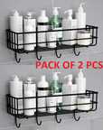 MY International M Y INTERNATIONAL 4 HOOKS WALL SHELF PACK OF TWO MAT BLACK COLOR (Mat Black)
