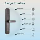 Mygate Plus BLE Lock|6-Way Unlock - Fingerprint, PIN, OTP, App, RFID, Key|3Y Warranty Smart Door Lock (Brown)
