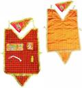 MyGodGift Combo of 2 Hanuman G Cheque Design Cholas(1 Red Golden Border + 1 Orange color) Dress (Silk)