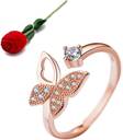 MYKI Beautifully Crafted Rosegold Plated Hollow Wing Butterfly Cubic Zircon Adjustable Ring For Women & Girls with Rose box packing Stainless Steel Cubic Zirconia Gold Plated Ring