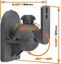 peaker Wall Mounting Bracket - Black (Max 7.5LBS) - Set of 2 The sb-28 is ideal speaker wall mount installing to the single thread or one of the double threads of the speakers. It is an easy and fast installation solution with slide-in wall plate design. The arc-shaped adjusting structure allows tilting 20 degree upwards and downwards, 70 degree left or right to provide ideal sound conditions. The adjusting knob gives an easy tool-less way of angling the speaker to provide desired sound conditions. The mount puts the speakers 64mm from the wall when fully stretched.