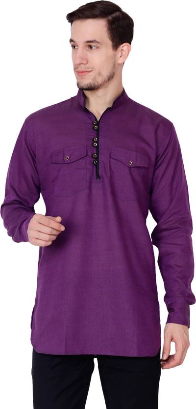 Men Solid Cotton Linen Straight Kurta (Purple)