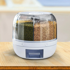 6-Compartment Grain Dispenser, Rotating Cereal Storage Box for Kitchen