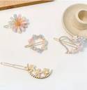 korean hair clips for girls Crystal Rhinestones Hair pins pack of 4 Hair Clip (Multicolor) This rhinestone hair clips, the hair pin type includes flower, heart, butterfly, moon style hair clips, nice combination to meet your hair styling needs.