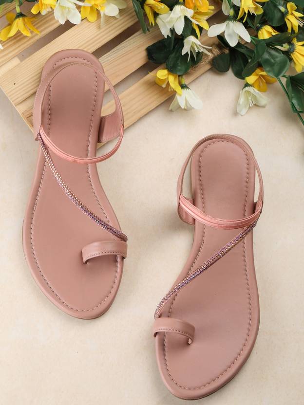 This pair of flat sandal is designed on TPR sole that gives flexible movement and fine grip against the surface that prevent the feet from slipping. The upper of the footwear is diamond embellished strap that connects with the toe-ring altogether gives this pair fancy and stylish look. In the lining and on the footbed of the sandals, synthetic leather material has been used to provide soft surface to your skin and thus protects it from damaging.