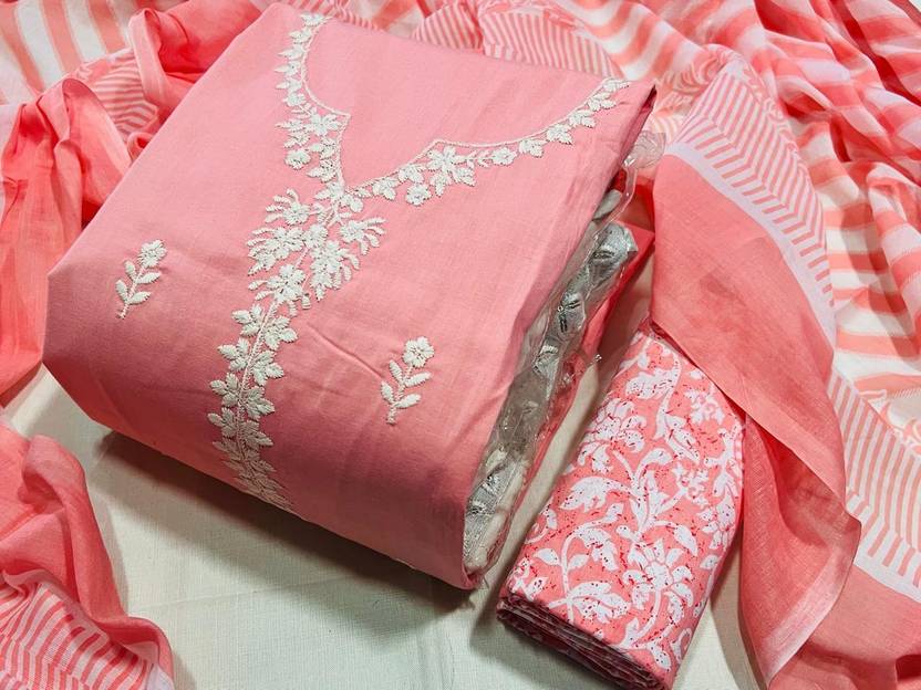 Unstitched Pure Cotton Salwar Suit Material Embroidered