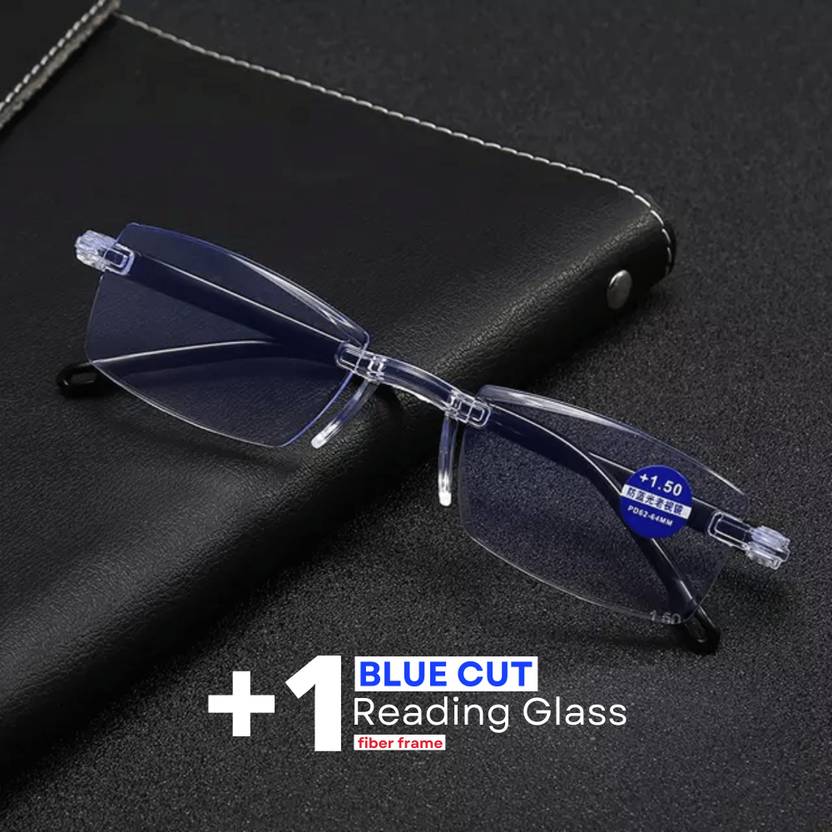 Rimless (+1.00) Rectangle Anti Glare & Blue Cut Reading Glass For Men & Women (54 mm)