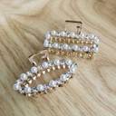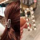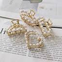 Add charm to your everyday hair styles with these adorable gold colour metal hair clip claw clutch with artificial rhinestone and pearl decorated on the clip surface.