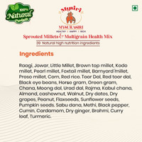 The health mix is made of completely natural ingredients to ensure that your health improves as you consume this drink daily. It is made of 39 natural ingredients, which are high in nutrition. The mix contains natural sprouted millets and multigrains, including ragi, jowar, horse gram, flax seeds, rajma, turmeric, and different types of millets, all of which contribute to improving your body functions and overall well-being.