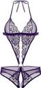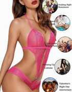 Women teddy style babydoll bodysuit. This sexy halter neck, deep plunge V neckline teddy lingerie is made of lace and ribbons, the sheer floral lace fabric is very soft and comfortable to wear. Satin bow ties on front, back and on side of hip look cute, side tie closure and thong bottom style make you look desirable. Occasion: Perfect for Bedroom ,Special nights, Valentine's day dress, Honeymoon nightdress or bridal nightwear lingerie . Perfect gift for ladies, wife and girlfriend on valentine's day, wedding night, honeymoon or every hot night. Pamper yourself with this super hot lace babydoll lingerie for women.