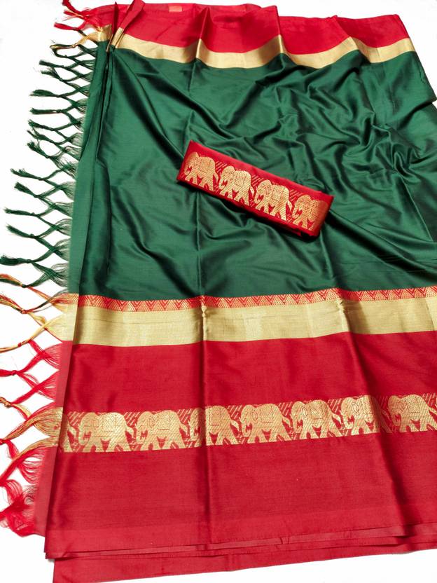 Mysstre Self Design Mysore Cotton Silk Saree (Dark Green)
