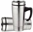 Stainless Steel Double Wall Travel Mug for Tea & Coffee 480 ML. Its easy to clean, Keep Hot Tea or Coffee for Longer time, Easy to Carry by Handle, Fits all car cup holders, Lid keeps your drinks safe from dust or insects. These Mugs are best for Engraving & Logo printing for Promotional and Corporate Gifting.
