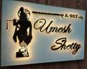 Mystica Glass Krishna Design Light Name Plate, For Home Office, Outdoor Entrance, Glossy White Led Name Plate (White)