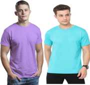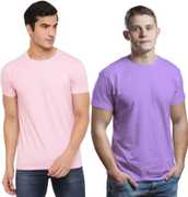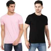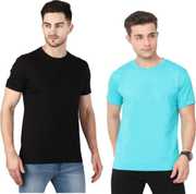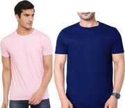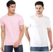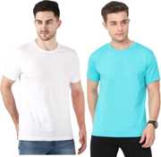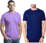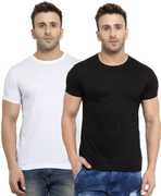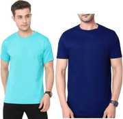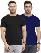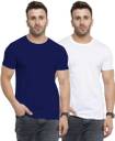 Pack of 2 Men Solid Round Neck Cotton Blend White, Navy Blue T-Shirt