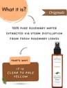 This product is an entirely pure hydrosol made from fresh rosemary leaves, ensuring maximum potency and effectiveness. It is a single-ingredient product with no additional ingredients, dilution, or additives, providing a concentrated and natural treatment. The purity of the hydrosol ensures that you receive the full benefits of rosemary without any artificial components, making it safe and effective for all hair types.