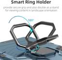 Premium Dual Layer Design. Built-In Ring Holder & Stand - for comfortable use while in Hand or for a Handsfree Experience on any surface