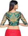 Trendzmy Exclusive Readymade Blouse with designer Half sleeves.it has a round neck and made of cotton hosiery and Art silk fabric.it can fit to any size(28"-38") 2" Extra Margine. Best Quality Fabric