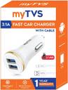 MYTVS 15.5 W Qualcomm Certified Turbo Car Charger (White, With USB Cable)