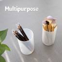 The compact container can store items of various lengths, such as pencils, pens, paintbrushes, cosmetic brushes, eyebrow pens, toothpaste toothbrushes, tableware, etc. which can be placed in your handbags or on the desk of the office, or on the bathroom washstand or bedroom dresser for convenient use.No assembly requirment. After the pen is put into the bucket, simply close the upper and lower parts together, rotate left and right, so that the buckle is embedded into the groove, and the box can be locked tightly without fear of loosening. It can be used as two separate parts. One side holds the pencil, the other side holds the makeup brush, expanding your desktop storage space.