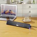 USB Computer Interface: The USB connection likely serves as a power source, making it easy to connect the speakers to a computer or laptop without needing a separate power adapter.