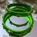 Light Green Silk Thread Bangles with Kundan Work (Set of 2)
